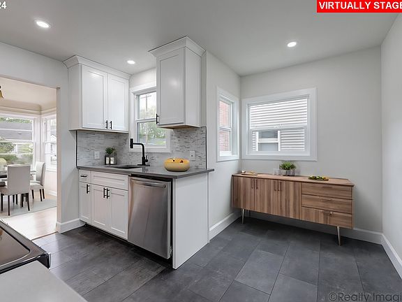 Delightful bright Arbor Lodge charmer! On the quiet stretch of N Greeley Ave, this home sits high above the street. Tastefully updated charming cape code in sought after Arbor lodge neighborhood. Sunny Space with large windows featuring Great Natural Light that brings out the shine in the newly refinished original hardwood floors. Updated Bathroom and kitchen with all new appliances and quartz counter tops. Large Master bedroom upstairs with walk in closet. Finished basement featuring a Party Room with a fireplace and built in Bar, additional flex space for office or workout room etc. Freshly painted with new luxury vinyl flooring. Also included is a utility Room with Washer Dryer and a pantry with plenty of storage. Easy access to the large, fenced backyard. Truly a gardener and entertainer's dream, complete with a shed to store your tools in. An oversized back deck will be lovely for fall star gazing around your firepit and summertime BBQ's. Just a stone's throw away from one of the best parks in North Portland. Brand new roof, sewer line replaced, and oil tank decommissioned. Extended driveway with single car detached garage for plenty of off-street parking. You can move in with peace of mind that the big expenses have already been taken care of. All this combined for the perfect home in the perfect location.