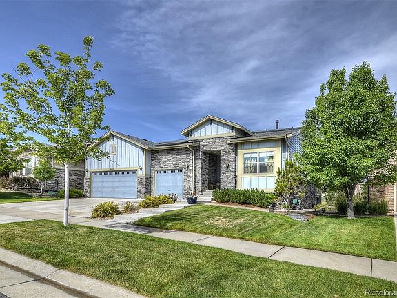 Amazing Ranch style home with finished walk-out basement in the sought after Southshore neighborhood! All I can say is upgrades, upgrades, upgrades! This beautiful home includes a stone wrapped front porch, extended 8' height doors, vaulted ceilings, wide planked hardwood floors, water purifier, water softener, central vac system, cat 6 prewiring, Surround sound prewiring, central AC and so much more!! This four bedroom, five bathroom home boasts a stunning open concept floor plan. On the main floor you will find the large gourmet kitchen equipped with an expansive center island, quartz countertops, Stainless hood, five burner gas cooktop and walk in pantry! Off the kitchen you will find the cozy family room with stunning stone fireplace. Additionally we have a well appointed master bedroom with walk in closet and large five piece master bath with double vanities. The two additional main floor bedrooms are full suites containing their own bathrooms! In addition there is a large den that can be utilized as a home office or fourth main floor bedroom. Now lets talk about the huge covered wraparound deck off the family room! It is composite material and low maintenance. This deck offers year round flex and entertaining space and overlooks a greenbelt. The deck is equipped with ambient lighting and a gas line for your grill! Heading down stairs we find a professionally finished basement with another family room and additional bedroom and bathroom. The basement contains a large workshop/craft area, cabinets, counters and sink. The walk-out basement opens to an extended concrete patio for additional outdoor entertaining space. Let's not forget the three car garage with professionally coated polyaspartic floors and ceiling storage system! Access to two clubhouses, pools, gym, lake and movie theater!! Part of the highly rated Cherry Creek School district. With its central location you have easy access to shopping, restaurants and the DTC.