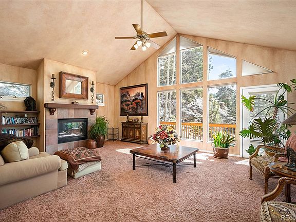 Peaceful and private, this meticulously and lovingly maintained three-bedroom, three bathroom, 2,760 sq ft retreat of a home enjoys beautiful mountain views while offering a quick and easy commute to Denver and neighborhood shopping, restaurants, and recreation. Upon your visit relaxation sets in as the vast great room windows bring the outside in, with views of rock outcroppings, various tree species and a menagerie of wildlife while bathed in natural light. Graced by the constantly present environment, this home presents an unparalleled living experience with an open great room, vaulted ceilings, and functional floor plan. The spacious kitchen is the heart of the home, adjoining the other spaces and creating an easy flow. A walk-out lower level boasts high ceilings and numerous windows, adding character to the inviting family room which gives access to the spacious deck and incredible outdoor living. Two secondary bedrooms and a full bathroom complete the space. Perfectly situated on 1.5 private acres, the home captures beautiful mountain vista views yet is located just minutes from town. Mountain living has never been so convenient.