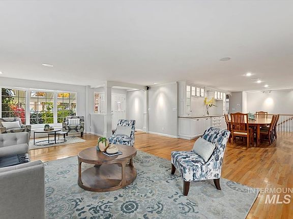 Nestled on ¾ of an acre with park-like grounds, this west Boise home has amenities to enhance your living pleasure! Features include gorgeous hardwood floors sprawling throughout the main floor and a French country masonry fireplace w/ custom three-sided glass. There is an abundance of built-ins throughout the living areas & bedrooms, an oversized office and a guest suite with private entrance. One-of-a-kind kitchen with 60” Pro Series Viking Gas Range with double ovens, Sub Zero refrigerator, granite countertops, custom cabinets & window-wrapped dining nook. Additional commercial catering kitchen with full wall stainless-steel sinks, 9’ butcher block movable island, commercial cooking line & 15’ walk-in cooler & freezer. Your very own outside oasis awaits with gated in-ground pool, hot tub & pool cabana with dressing rooms, bathroom & pump room. Picturesque koi pond, firepit area, chicken coop, RV power hook-up & enjoy a private entrance to Mountain View Park. Living is easy in this rare gem!