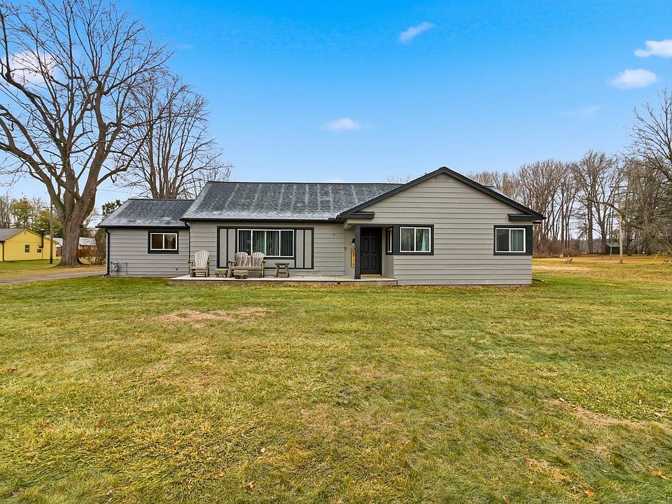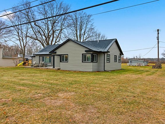 Totally updated 3 Bed, 2 Bath ranch on tranquil 1 acre lot. This home features a gorgeous chef kitchen w/ tiled backsplash, brand new appliances & plenty of counter & cupboard space. The primary bedroom suite features a fully tiled bath w/walk in closet. Off the back of the house is a beautiful patio w/ outdoor fireplace overlooking your very private backyard w/ wooded views & plenty of wildlife. Workshop outbuilding w/ 3 phase electric. 2 car garage w/ upstairs storage room. Roof, gutters, soffits & waterproof encapsulated crawl 2023. Furnace/AC/H20 2025. City water & sewers. Anchor Bay Schools.