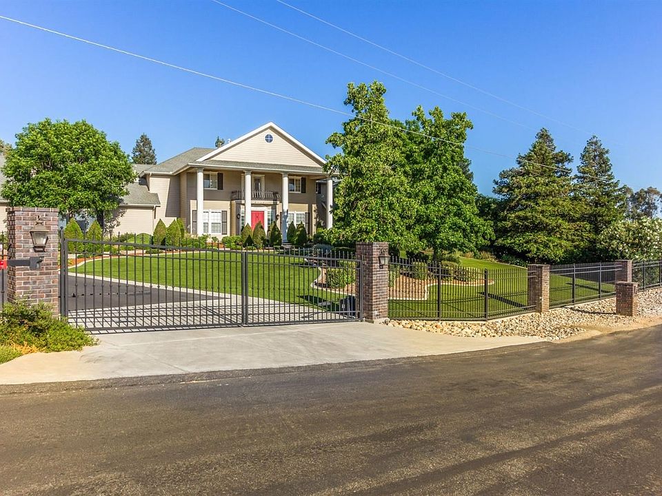Elegant yet relaxed country living best describes this gated horse-friendly estate which sits on 2.47 acres. 1 acre has been beautifully landscaped for water conservation & the 2nd acre is fenced and ready for a barn & horses. Italian marble and honed porcelain tile in entry, formal living and dining rooms . An expansive yet inviting granite island kitchen opens to a high-ceilinged great room w/ 6 inch maple plank hardwood floors that flow into the double-doored master suite. Stainless appliances include a SubZero fridge, Bosch dishwasher, & Wolf range. The formal dining rm features two sets of French doors that flow into the great rm & kitchen for effortless entertaining. The sweeping staircase leads you to 3 BRs/2 BAs & library. Downstairs you will find the master suite, isolated guest suite, laundry & a gym off of the garage. You truly must see and experience this home to appreciate all it has to offer. Quick, 6 min access to Herndon & Hwy168. CUSD. Newly resurfaced pool. New HVAC!