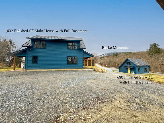 In the heart of East Burke village, just steps from the Kingdom Trails and minutes to Burke Mountain, this unique property features two newly built homes completed in 2025—offering flexibility, modern finishes, and investment potential. The main residence includes 1,402 square feet of finished living space across two levels, featuring 2 bedrooms, 1.5 bathrooms, and a full unfinished basement ready for future expansion. The accessory dwelling unit (ADU) adds 680 finished square feet with a spacious loft-style bedroom, a full bathroom, and an unfinished basement—perfect for storage or customization. The thoughtfully designed layout includes granite countertops, soft-close cabinetry, hardwood flooring, radiant heat, and mini-split systems for efficient year-round comfort. Both homes are equipped with brand new appliances—including washers and dryers—and a hybrid hot water heater for added energy efficiency. Whether you're looking for a vacation base, short-term rental opportunity, or multi-generational living, this property offers flexible living options just three hours from Boston. Enjoy village living with the convenience of sidewalks, or head straight into the Burke town land from your doorstep to access world-class biking and outdoor recreation on the Kingdom Trails. This is a rare opportunity in one of Vermont’s most sought-after adventure towns.