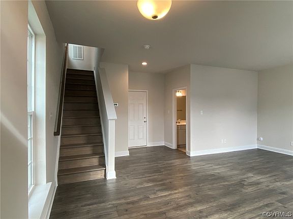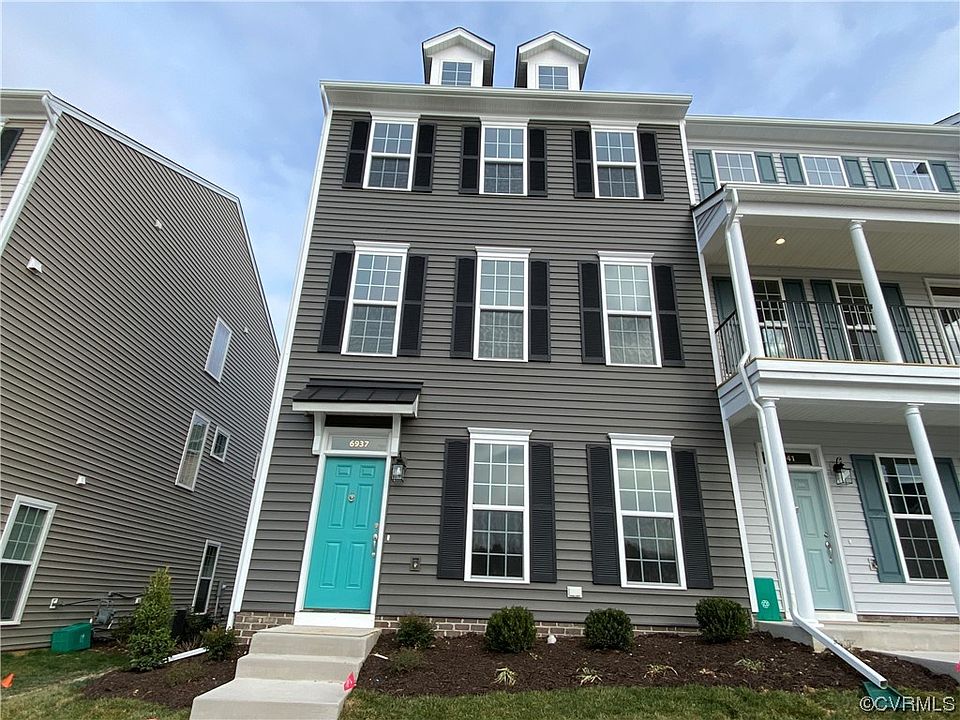 The Brook by Main Street Homes! Energy Star certified 3 story end unit townhome that offers 3 bedrooms, 3.5 baths, oak stairs from 1st to 2nd level, a rear entry 2 car garage, tankless water heater, rear deck, low maintenance vinyl siding and a charming, covered stoop. The first floor includes an open flex room, full bathroom, and a coat closet. The second floor open concept offers a large great room, dining room, and a "rear layout" gourmet kitchen complete with granite countertops, ceramic tile backsplash, stainless steel appliances, an oversized 8’ island, and a walk-in pantry. The third floor includes an owner's suite with 2 walk-in closets and an ensuite bathroom with ceramic tile shower, and double bowl vanity. Two additional bedrooms, full bathroom, and the laundry room completes the third level. Cosby Village amenities include a clubhouse with fitness center, a resort style pool, dog park, community garden, paved sidewalks with pocket parks, and walking trails. Cosby Village will give you low maintenance living right off Hull Street Road and Otterdale Road in a top ranked school district near shops and dining.
