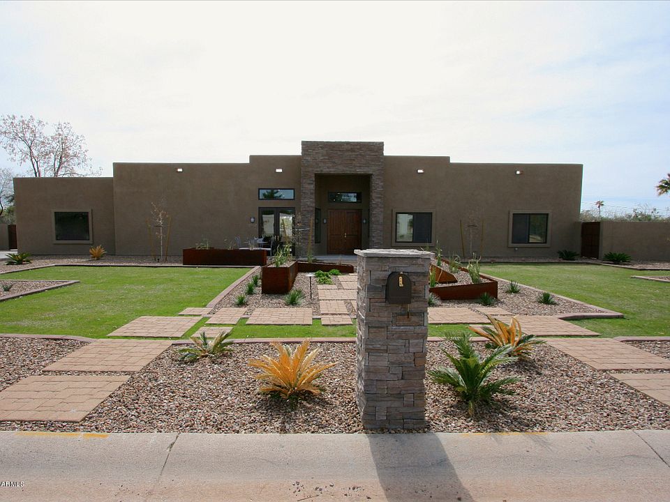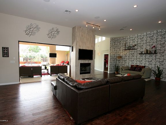 Beautiful contemporary modern home complete 2012 rebuild in PV Scottsdale border walking distance to Equestrian Park. This exquisite & very unique floor plan w/ vaulted ceilings throughout has 5 bedrooms (all with walk-in closets!) plus a media room, office & playroom not to mention 3 full bathrooms and 2 half baths.Huge kitchen, large open family room w/ an exquisite wall of sliding glass windows allows you to bring the outside indoors and surround yourself in luxury enjoying this true backyard oasis. This living space situated on almost one acre has everything any family would dream of! Approx. 1850 additional sq ft of private patios surrounding the home make superb outdoor living space for all not to mention the beautiful resort style pool with plenty of room to roam!