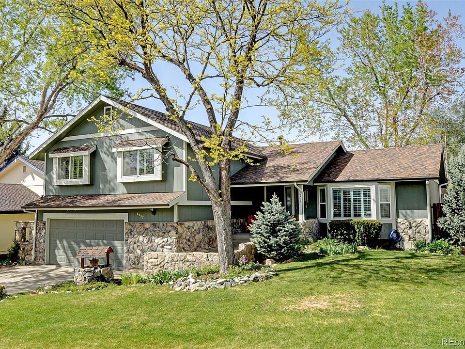 Remodeled Foxridge Home steps from Foxridge Park! Great cul-de-sac location! Beautiful hardwood floors throughout the main floor and the remodeled kitchen has upgraded cabinets and slab granite! Kitchen overlooks the spacious deck out back as well as the lower level family room with a two-story rock fireplace! Three bedrooms up, including the primary suite with a remodeled bathroom! Main bathroom is also remodeled, as is the 3/4 guest bathroom on the lower level! Basement family room has room for home theater space and a wet bar! The furnace and a/c are newer! The lush private back yard has a beautiful deck and flagstone patio!