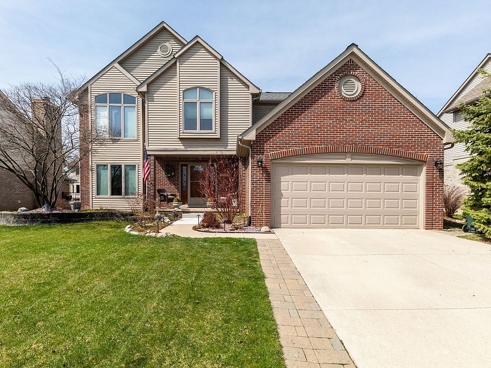 Walk up to the cozy porch of this charming colonial home in a great neighborhood in the heart of Canton! Gleaming hardwood floors and natural light throughout the first floor. Recline in the great room featuring 20 foot ceilings warmed by the gas fireplace, opens to a upgraded kitchen with appliances to remain. A Pella sliding glass door leads to a wooden deck shaded by a retractable awning and adjoining oversized paver walkway, where you’ll enjoy beautiful views of the park-like setting as the landscape blooms in the Spring. Well-maintained carpet welcomes you upstairs to 4 bedrooms & a full guest bath boasting a jetted tub. Master suite features views of the quiet neighborhood through gorgeous windows, an en suite bath with walk-in shower, dual sinks and walk-in closet. The Jr Suites(s) respectively host built-in shelving (ready for your home office!), huge closets and a Palladian window! First-floor laundry is an added bonus! Head down to the fully finished basement with fresh paint which offers a recreation area, full bathroom and plenty of storage. Attached 2-car garage just received a new door with springs! Newer Furnace, windows, door-wall, pavers, aluminum trim-work, and roofing - all that is left to do is move in!