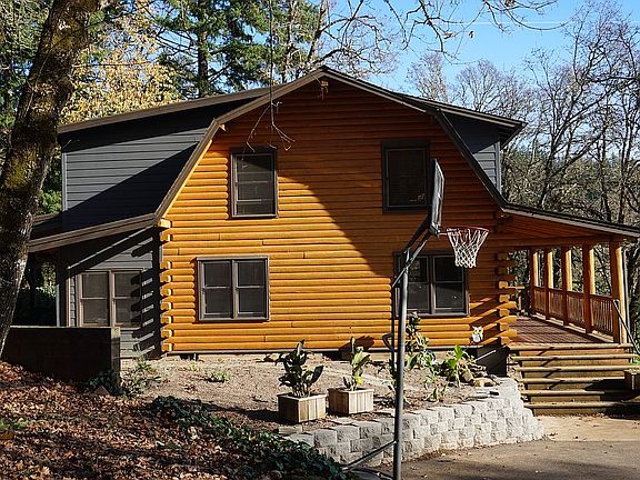 Log Home built in the mid-nineties. Detached 24X24 Shop with power. 450sqft covered concrete patio. Generator plug for use in power outages covering kitchen, well, and living room. New drain field installed in 2018 with the addition. Built in bookcase in dining room. Mature trees throughout property. Blueberries, grapes, currants, raspberries, strawberries, cold-hardy kiwis, marionberries. Gorgeous views of surrounding farms and fields.
