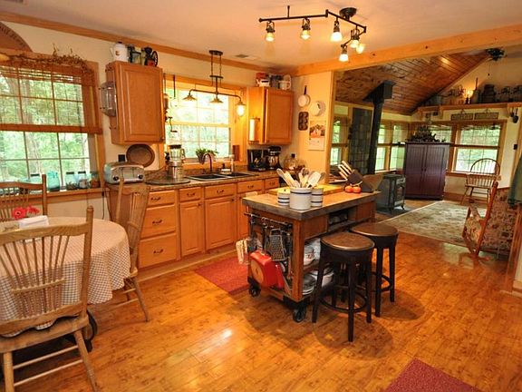 Awesome Setting! on 29.67 areas. Enjoy your home nestled in your very own wooded area that opens up. You will love the get away feeling living in your renovated cap cod 1.5 story home with front porch and large eat-in kitchen. The home has natural wood interior with great room and loft and real wood burning stove. Storage shed off the side of the home. The home has a Whole home Automatic back up generator. The 3 section Pole barn is 60x40 has a front porch and back Patio to enjoy those warm summer nights and the pole barn can be made into a living space apartment or home with its own electric service which is in place. Water supplied by Earnhart hill water. This place has a lot of room to build your home!