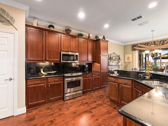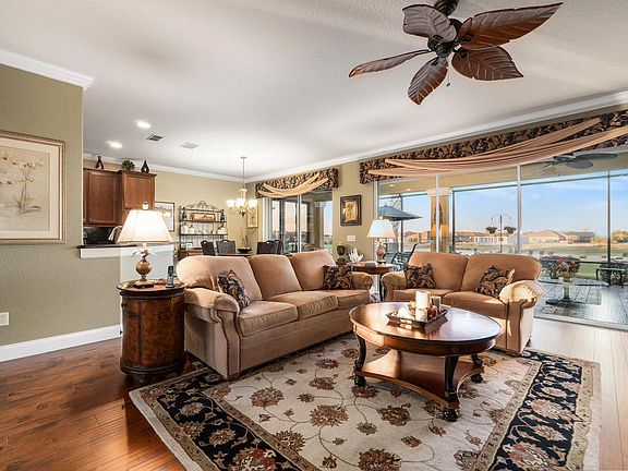 Custom Hanover on the golf course with panoramic views of the 6th hole on Stone Creek Golf Course! Absolutely fabulous if you would like to sit and look at the lake, the the fairway of holes #6 & #7 and a fun on view of the 6th green. Magnificent! You really need to look at this home before deciding to build on the golf course and see the custom baths, custom kitchen, custom landscaping, custom birdcage and all the little extras to go with this level of home being offered for the first time ever in this Del Webb community. Please call for a personal showing you will not be disappointed.