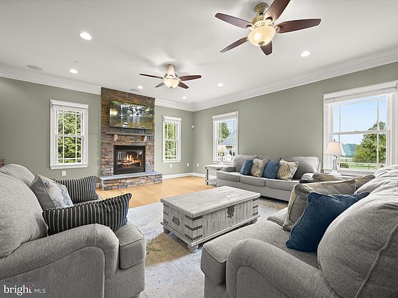 Nestled on 2.57 scenic acres, this beautiful custom-built home offers over 4,000 square feet of living space across three finished levels. The stone-accented exterior and well-manicured landscaping invite you into a serene retreat surrounded by lush, mature trees, and backing to tranquil farmland. This private, gated property features a resort-style outdoor oasis, complete with a saltwater pool, a pool house, and an outdoor grilling area, making it the perfect space for entertaining or relaxing in peaceful seclusion. The grand double-entry doors open to a welcoming foyer, where high-end finishes such as crown molding, gleaming hardwood floors, and granite countertops set the tone for the luxury found throughout the home. To the left of the foyer, French doors with frosted glass lead to a private home office, while to the right, a formal dining room with elegant wainscoting awaits. The heart of the home is the chef’s kitchen, featuring 42-inch cabinetry with roll-out shelves, granite counters, stainless steel appliances, and a gas range. A spacious pantry and breakfast area with sliding glass doors to the deck complete this inviting space. Just off the kitchen, the living room offers a cozy stacked-stone fireplace, built-in bookcases, surround sound, and picturesque views of the pool and backyard oasis. Concluding the main level is a powder room for guests. Upstairs, each bedroom has its own private full bath, offering ultimate comfort and convenience. The primary suite is a true retreat with an en-suite bath boasting a double vanity, a soaking tub, a tiled shower, and access to a walk-in closet that conveniently connects to the laundry room. The laundry room, accessible from both the hallway and the primary bath, includes a sink, cabinetry, and shelving. Three additional bedrooms, each with their own full bath, complete the upper level. The lower level is perfect for entertaining, with a wet bar featuring counter seating and display cabinetry. Enjoy movie night in the spacious family room with a second fireplace and surround sound. A full bath, and walk-up stairs to the backyard provide convenience and conclude this level. The property offers abundant storage with spacious closets, linen closets, and attic space in the house, pool house, and detached garage. Outside, the covered composite deck overlooks the sparkling pool, enclosed by fencing for security. The pool house features a well-appointed kitchenette, dining and lounging areas, and expansive double sliding glass doors that open to picturesque views of the pool. The outdoor grilling area, complete with a second burner, is ideal for hosting summer barbecues. Additional features include a fire pit, exterior lighting for evening ambiance, and a Tesla charger in the attached three-car garage, which also boasts an epoxy floor and a full bath with direct access to the pool. The detached two-car garage offers ample storage space and serves as a versatile area for a workshop or additional vehicle housing. This exceptional home is also equipped with multiple controls for the entry gate, an indoor sprinkler system, a water neutralizer with reverse osmosis at the kitchen sink, a whole-house water heater circulator, and hardwiring for an invisible fence. For added peace of mind, the home is equipped with a comprehensive whole-house monitoring alarm system and an exterior security system that includes cameras, ensuring 24/7 surveillance of the entire property. Experience the luxury, privacy, and charm this one-of-a-kind property offers!