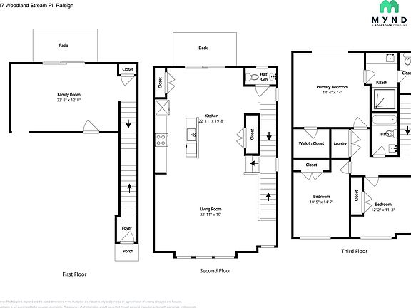 Discover your new home at this spacious 3-bedroom, 2.5-bathroom property located at 6937 Woodland Stream Pl., offering 2049 square feet of living space. This stunning home features an inviting open floor plan, with a modern all-white kitchen that includes stainless steel appliances and a center island with seatingideal for cooking and entertaining. The primary bedroom boasts an attached bathroom and a walk-in closet, providing comfort and convenience. Enjoy a charming wood balcony which allows for outdoor relaxation. Located in the Riverwalk community with easy access to 540. Apply today to make this beautiful home yours! _____ RENT WITH MYND -Fast Online Application (valid for 30 days) -Mobile App to Pay Rent and Track Services -Affordable Renter's Insurance Lease term: 12 or 18 months ONE-TIME FEES Non-refundable $59.00 Application Fee Per Adult One Time Move In Fee $199 REQUIRED MONTHLY CHARGES* $2085.00: Base Rent $39.95/month: Residents Benefits Package provides residents with on-demand basic pest control, as-needed HVAC air filter delivery, Identity Theft Protection, and access to an exciting rewards program *Estimated required monthly charges do not include the required costs of utilities or rental insurance, conditional fees including, but not limited to, pet fees, or optional fees. CONDITIONAL FEES This is a pet-friendly property! 3 Pets Max; Pet Move-In Fee $199 per pet; Pet Rent per pet varies based on Paw Score. Breed restrictions apply. Mynd Property Management Equal Opportunity Housing License # C31492 Mynd Property Management does not advertise on Craigslist or Facebook Marketplace. We will never ask you to wire money or pay with gift cards. Please report any fraudulent ads to your Leasing Associate. Federal Occupancy Guidelines: 2 per bedroom + 1 additional occupant; 2 per studio. Please contact us for move-in policy and available move-in date.