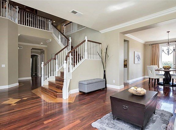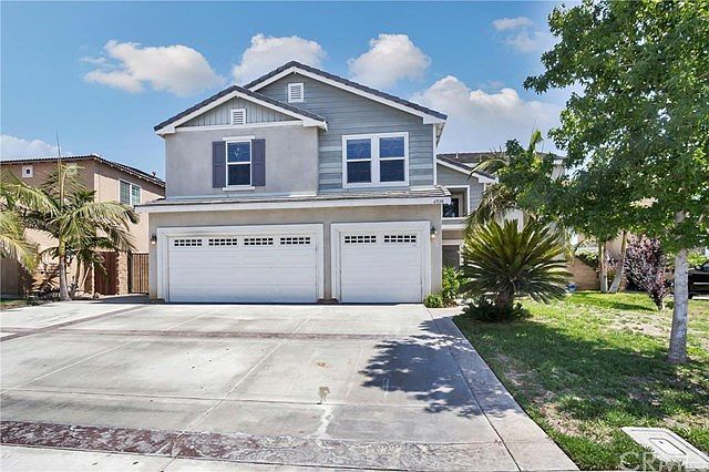 Centrally located in Eastvale near schools, shopping, restaurants & freeways. This spacious home features 5 bedrooms, 3 full bathrooms, 3,254 square feet of living space on an 8,712 square foot lot with plenty of space for a pool and has RV ACCESS. The home has one bedroom & full bathroom downstairs with a separate doorway leading to the bathroom for privacy. This home boasts, an open entry with high ceilings, large & open loft area with custom built-in entertainment center including computer station, wood floors & crown molding throughout the house, upgraded kitchen & bathroom counter tops. All bedrooms upstairs feature plush carpet, plantation shutter & custom built drawers in bedroom closets. The kitchen & formal dining room areas feature double doors that lead to the patio. The family room features a custom built-in entertainment center, a custom built fireplace mantel & plantation shutters. Additional features include back yard patio cover, large center island in kitchen & walk in pantry, Laundry room upstairs with utility sink, tile floor in all bathrooms, surround sound speakers in family room and loft, custom built-in linen cabinets next to laundry room, dual sinks in master bedroom & upstairs community bathrooms.