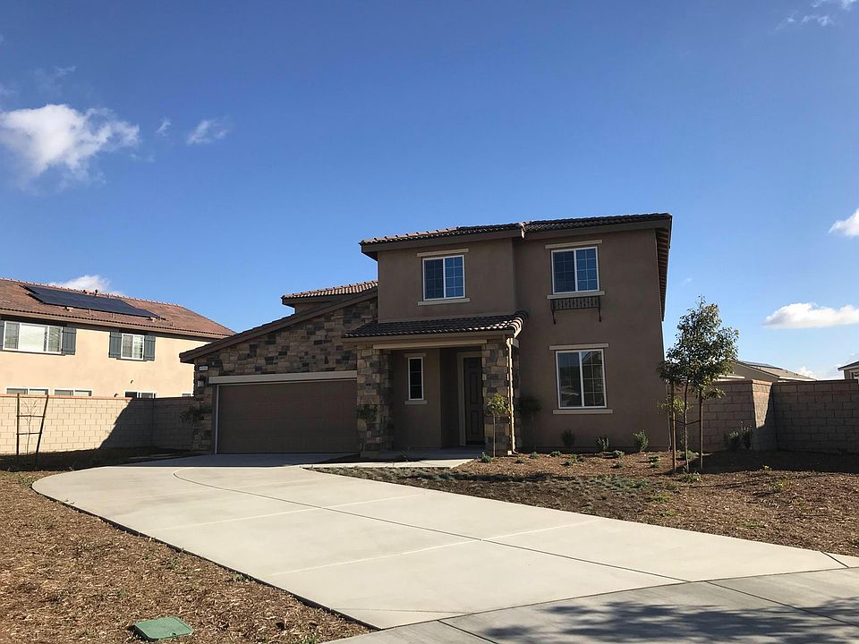 2017 Lennar Home in the community of Riverbend, Eastvale schools - Spacious California Living and Entertaining Home This five bedroom two-story home offers plenty of extra space for entertaining. The first floor features one office, large dining room, great room, gourmet-inspired kitchen with brand new refrigerator,one bedroom with full-sized bath, large covered back patio with fireplace. 3 car garage with extra tandem for added storage space. Upstairs the huge master suite includes a large walk-in closet with built in vanity, master bath with soaking tub and dual sinks along with a well-sized master retreat. One big bonus room/loft upstaies, laundry room, full-sized bath and three bedrooms, this dream home floor plan is one thats sure to impress. near golf course. The home comes equipped with solar panels, which means cost savings for electricity bills. The community is in an excellent location, in close proximity to Corona-Norco district award schools, new Costco within 5 mins driving away is coming this fall. Restaurants, shopping and recreational areas very close by.