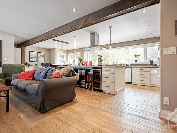Tastefully renovated hi-ranch bungalow in the heart of Orleans with no rear neighbours. Large 75x215 feet private and treed lot. Many renos in 2015 including kitchens, bathrooms, flooring, light fixtures, windows and more. The home has many large windows that allow for lots of natural light. The main level has 2 bedrooms and a den for the work-at-home professionals. Extensive landscaping has been done both in front and back including hard and soft landscaping, the backyard is a real oasis and has a beautiful pond. The front has a large covered veranda. Lower-unit in-law suite. The beautiful garage home studio space has a private entrance and would be great for massage therapists, physiotherapists, accountants, etc. Very large parking area also great for contractors or landscapers with trucks, equipment, tools, etc. Property currently rented at $4,500/mth all-inclusive, tenants month-to-month. Offers Presented March 24th @4pm. Seller reserves the right to review pre-emptive offers.