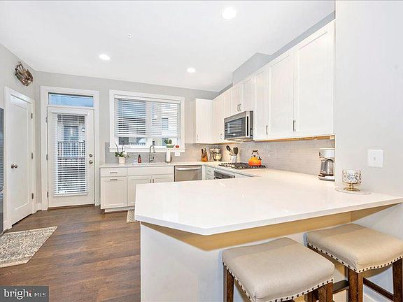 Luxury four story townhome located in the beautiful Montgomery Row Community built in 2018 by award winning developer EYA.Tis energy efficient LEED certified home has three bedrooms each with en suite bathrooms a total of 3.5 baths, open floorplan,two separate living areas,owners suite with custom walks in closet, dual vanity owners bath,juliet balcony in second bedroom, spacious west-facing rooftop patio(sunset),deck off of main floor kitchen, nine foot ceilings, oversized windows, full size stackable washer and dryer, and a two car garage with abundant storage space. Upgraded options include but are not limited to are engineered laminate hardwood throughout home, oak staircase, oak and wrought iron railings,Whirlpool stainless steel appliances, five burner gas range, kitchen LED under cabinet lighting, soft close cabinets,quartz counter tops(white marbled),tiled kitchen back splash, rear bay window in owners suite, custom walk in closet shelving system, frameless chrome master shower enclosure, owners bath shower niche,brushed nickle fixtures in kitchen and baths,,en suite bathroom in top floor third bedroom, vanity lights in all bathrooms, six inch recessed lighting throughout home, main floor deck off kitchen, gas lines with quick connect in both exterior spaces, roof terrace mounted lantern, keyless code access front door, hidden cable wiring on main floor and in owners suite,custom window treatments, and three suspended garage storage racks, Convenient location proximate to Westfield Montgomery Mall,Wildwood Shopping Center,Georgetown Square Shopping Center,Cabin John Village Shopping Center,Giant,Balducci's,CVS,Home Depot,and Cabin John Regional Park. Superior commuter location close to downtown Bethesda with easy access to I-270,I-495,,and the Grosvenor Metro Station.