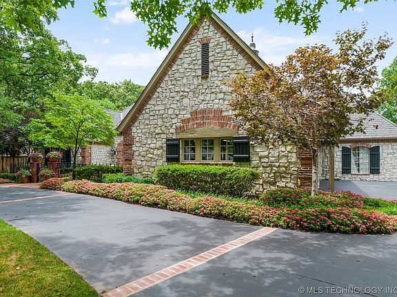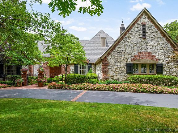 Prime location south of Southern Hills Country Club. One-owner quality, custom-built home on mostly one-level. Meticulously maintained and improved. Redesigned and remodeled ~15 years ago by Mike Dankbar. Offering grand-scale rooms, high, vaulted and beamed ceilings, beautiful hand-scraped hardwood floors, and oversized Pella windows and doors throughout. Functional floor plan to include 3 ensuite bedrooms, formal living, separate office, formal and casual dining, a spacious, open living/kitchen with gas fireplace, plus large upstairs flex room and walk-out attic. 3-car side-entry garage, circular driveway, gated courtyard, professionally landscaped in front and back. Large, private backyard features vaulted outdoor living with fireplace, built-in grill, and water feature.