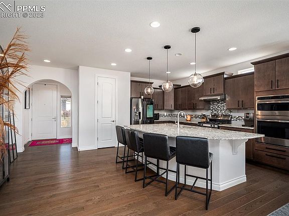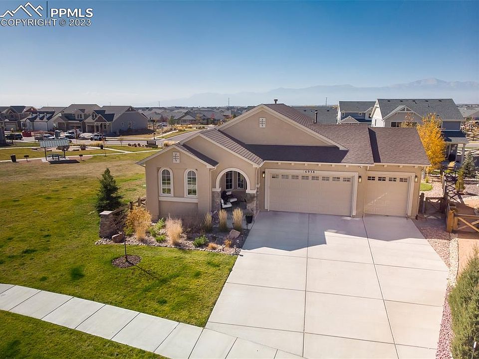 Welcome to this immaculate ranch-style gem nestled in the highly sought-after Banning Lewis Ranch master planned community. Boasting a generous 3436 square feet of living space, this residence offers a spacious and comfortable layout. With four bedrooms and three bathrooms, it's perfect for families or those who love to entertain. The three-car garage provides ample space for vehicles and storage. The open concept design creates a seamless flow between the living areas, making it easy to enjoy gatherings with friends and family. Imagine stepping outside to the serenity of the neighborhood park, providing a picturesque backdrop and a sense of tranquility. This home is beautifully landscaped, enhancing both the curb appeal and overall atmosphere. Updated light fixtures add a touch of modern elegance, creating a warm and inviting ambiance. Whether you're hosting indoors or taking the festivities outside, this property offers endless opportunities for entertainment. The convenience of a main-level master suite adds an extra layer of comfort and functionality. The low-maintenance exterior ensures that you'll have more time to enjoy the amenities offered in this vibrant community. Speaking of which, the Banning Lewis Ranch community offers a wealth of amenities, including a sparkling community pool, tennis courts, and pickleball courts for the sports enthusiasts. Stay fit in the state-of-the-art fitness center, and enjoy gatherings at the clubhouse. the neighborhood features amazing schools, providing an excellent education. Explore the numerous parks and trails, creating opportunities for outdoor adventures. Cool off on warm days at the splash pad, or take part in community events that foster a sense of belonging. This home truly embodies the best of Colorado living, combining comfort, style, and a vibrant community atmosphere. Don't miss out on this opportunity to make it your own!