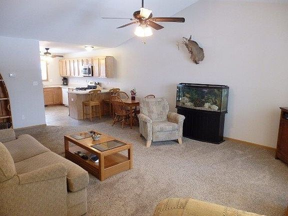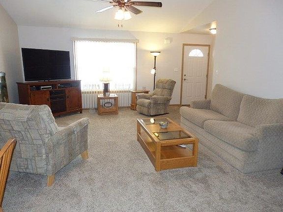 Better than new open concept duplex located in Coventry subdivision. Beautiful cathedral ceiling in the spacious living room into kitchen. Kitchen hosts breakfast bar, great cabinet storage, pantry, and stainless appliances stay and leads to the private deck in the back yard. Appreciate the spacious bedrooms, including a master bedroom with walk-in closet and bathroom, and two additional bedrooms with a nearby bathroom. Finished laundry room leading to two car garage. NO HOA DUES! No exemptions filed, taxes could be lower. Immaculately maintained home ready for new owners. Don't miss out on this beauty, call today to schedule your private showing.