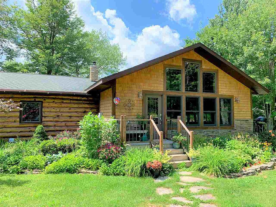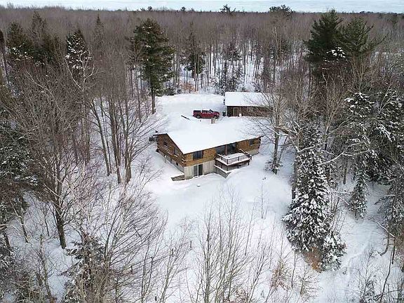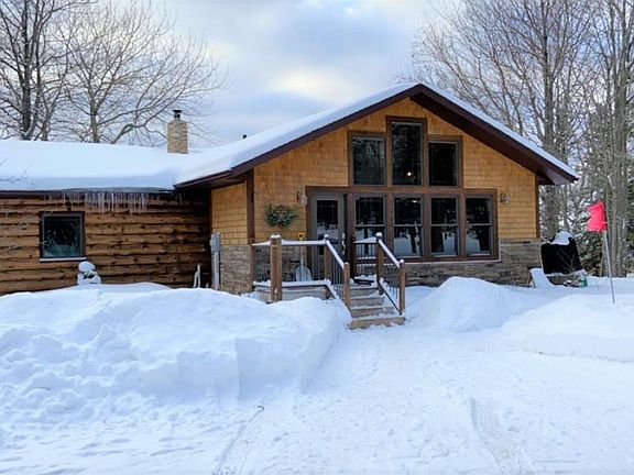 Gorgeous 3 bedroom, 2 bath log home on 40 acres! You will fall in love with this turn-key dream home, in a quiet, wooded setting with a breathtaking view. The main level includes a large entry way with picture windows, charming kitchen custom island with stainless steel appliances, a living room overlooking the bluff, 3/4 bath with tiled shower and 3 bedrooms offering spacious closets. The walk out basement provides an excellent space to entertain with a maple butcher block counter and wet bar, mini fridge, and hickory cabinets, as well as space to work and exercise! All updates have been done for you including seamless gutters, new windows, roof, and furnace (November 2019). There's plenty of storage outside in the 28x32 detached garage or 24x24 barn; both have power! The 40 acres is completely surrounded by public land and is very private. Deer, bear, rabbits, fox, you name it frequent the woods around the house. This is a true nature lovers paradise!