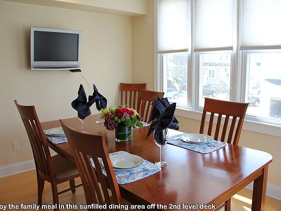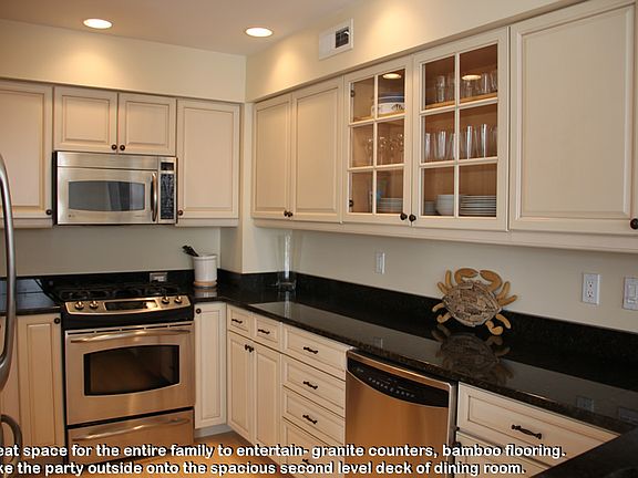 Exceptionally well maintained and cared for this multi-level townhome is a great value and surprising opportunity to enjoy your summers at the shore. Completely renovated in 2006 this home offers many of the special features of the homes built today. Bamboo flooring throughout, crown molding accents, the use of tile and stone throughout are just a few of the special features. The main gathering area on the middle level is accented with crown molding, custom paint palette and bamboo flooring. Also featured is a wet bar complete with wine /beverage cooler, dishwasher, wood cabinetry and granite counter tops. A gas fireplace is the center piece of the room with flat screen television. The ample sized kitchen offers wood cabinetry highlighted with granite counter tops, bamboo flooring and stainless steel GE Profile appliances. Enjoy the family meal inside in your spacious dining area or outside on the generous low maintenance deck right off the dining room. There are four carpeted bedrooms that share two custom tiled baths; one with large tile shower the other with tiled jetta tub. Looking for an amazing view? The roof top deck is the place to enjoy an evening beverage as you watch the sunset over the meadow. There is tons of storage in the one car garage plus off street parking for five vehicles. The outside shower is HUGE and the landscaped beds enhance the outside yard with color and greenery. Historically a consistently strong rental home, this season there is plenty of time available for you to enjoy this home yourself. Easy to see please call listing agent for an appointment and for long list of improvements and updates.