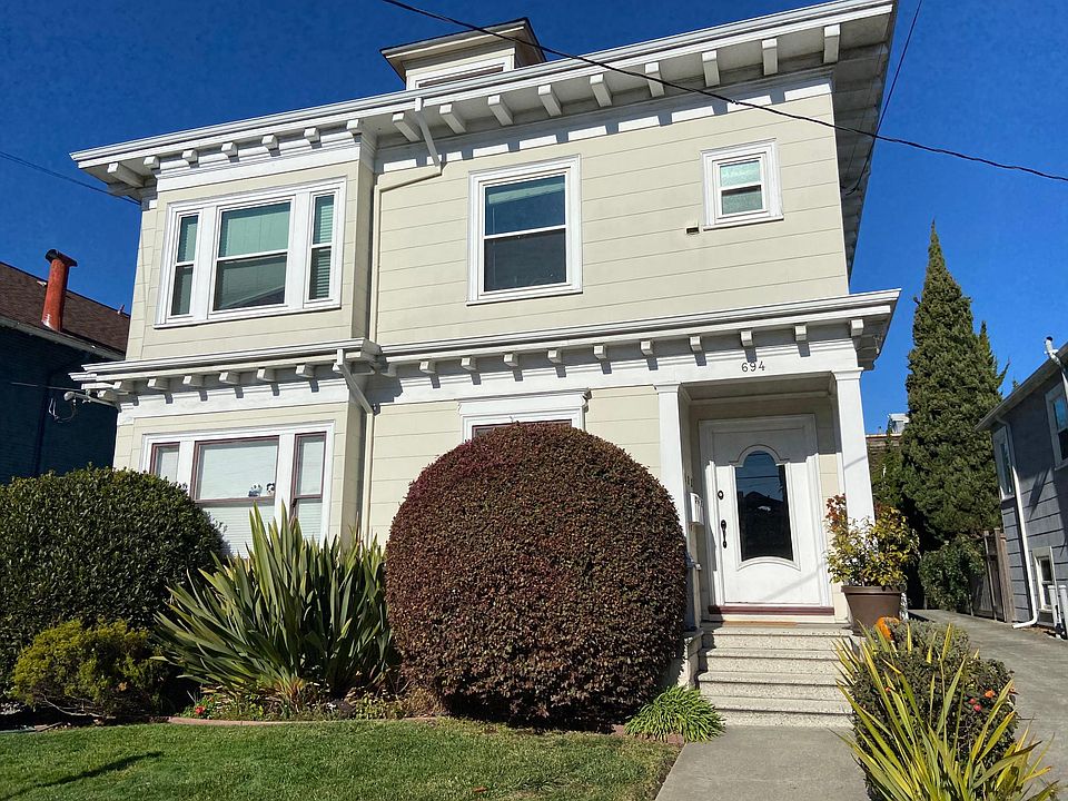 Spacious, sunny and furnished apartment with high-ceilings in 4-unit house. Unit includes a large bedroom with an in-unit laundry room and large closet, spacious bathroom, living/dining area and a kitchen with a private balcony. Furnishings: Brand new firm mattress and bedframe Large and small dressers New couch & end table Bookshelf Dining table & chairs Kitchen appliances (fridge, gas oven/stove, microwave, toaster oven) TV + chromecast Sonic Fiber hookups in unit Gas fireplace and electric space heater Other Amenities: Designated off-street parking (behind unit) Hardwood floors Large attic storage Location: 10 min walk to Ashby BART Close to Bushrod and Dover Park Next to Dover (SLOW ST) corridor Walking distance to Berkeley Bowl Walk Score: 93, walk to College, Elmwood, Temescal, Rockridge Easy access to freeways Owner pays trash, recycling, gas, electric. Tenant pays water. No smoking on premises. Cats and small dogs OK. Min lease: 3 months. Flexible move-in date First and last month rent up-front + security deposit (refundable).