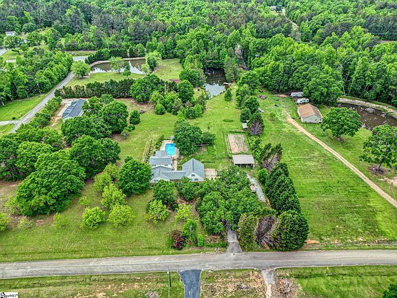 One-of-a-Kind Multi-Generational Retreat on Nearly 5 Acres — No HOA, Private Pond & Inground Pool! Welcome to your dream rural escape! This rarely available country cottage offers the perfect blend of comfort, space, and versatility—all set on nearly 5 private acres with a pond, saltwater pool, and no HOA restrictions! Perfect for multi-generational living or those who need space to spread out, this property includes: A main residence with over 2,700 sq. ft. of living space A detached apartment over the garage with a private entrance A 4-car garage with massive storage RV parking with water and septic hookups Open barn, pool house, and multiple outbuildings for hobbies, gardening, or farm equipment Nature lovers will feel right at home with a peaceful half-acre pond, fenced pasture area for pets or farm animals, and fruit trees dotting the open land. There’s plenty of space for kids to play, animals to roam, and for you to finally start the garden of your dreams. Inside the main home, you’ll find a thoughtfully designed layout ideal for privacy and flexibility, including: Two spacious ensuite bedrooms, one on each level An upstairs suite with office/great room, double vanity bathroom, and a covered balcony overlooking the pool A main-level suite with oversized bath, laundry room, and access to the covered patio and pool area A HUGE kitchen featuring granite countertops, stainless steel appliances, a tiled backsplash, tons of cabinetry, a walk-in pantry, and an oversized breakfast area perfect for family gatherings The garage apartment includes a living area, kitchenette, full bath, and bedroom—perfect for in-laws, guests, or even rental income. Located just minutes off I-385 in Laurens, this quiet retreat is only 15 minutes from Fountain Inn and 30 minutes from Downtown Greenville—offering the best of country living with city access. Whether you're watching wildlife by the pond, cooling off in the pool, or tinkering in the garage, this property is a once-in-a-lifetime opportunity you won’t want to miss! Call to schedule your private tour today—homes like this don't stay on the market long!