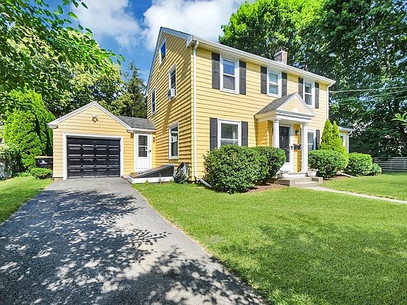 Beautifully updated & painted with soothing, coastal tones throughout, this Colonial charms you from the moment you enter. Traditional layout w/ modern updates offer excellent turnkey opportunity in a fantastic location. Large front to back living room features gleaming hardwoods & cozy fireplace. Enjoy cooking in reno'd kitchen complete w/ custom cabs, granite, SS appliances, extra deep sink, & gas cooktop. Dining room flows off kitchen for easy entertaining. Sunroom perfect for office space or play with custom woodwork & updated 1/2 bath complete first floor. Upstairs, find three nicely-sized bedrooms, tiled updated family bath, as well as landing w/ window seat & double closets for add'l storage. Partially finished basement offers potential for more living space. Backyard is a lush oasis for relaxation & play. Enjoy cookouts on new composite deck or gather friends & family around the firepit. Single car garage plus backyard storage shed add even more value to this wonderful home!