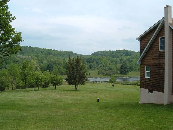Custom built home in rural Wyalusing, very private, awesome view, hunt and fish on your own property, stocked 3 acre pond. There is a large loft, sunroom, partially finished basement with barn siding, bar, pool table and deer processing area with meat cutting equipment. Bar, stools, pool table and all equipment stay, you walk out of basement to ground level thru mud room-hot tub room. House has many upgrades and is well taken care of. It is not a log home but is log sided. There will be inclusions with property. Note the pre-civil war stone wall. Property has 2 road frontages, lots of apple trees natural spring and watering hole. 3 bay garage has 2 car bays and 1 bay workshop area with large wood stove. 1 bay carriage house. Full front porch. Main level has oak floor. There are multiple heating systems, electric baseboard, propane gas fireplace, wood stove and propane wall unit heater and electric baseboard in basement, basement has 8' ceiling. If you count basement sq. ft. house is over 3000 sq. ft. The house is wired for generator, generator is a industrial grade portable unit. I will leave a dehumidifier and a/c unit. there are 2 identical bathrooms. both have fiberglass tubs, in new condition and both have quarry tile floors. I am willing to make a package deal with my Mahindra 30 hp hydro 4x4 tractor with quick attach system and 6 attachments, The value of the tractor and attachments is 16000, I am willing to get a new roof installed, It is the original roof and still in decent shape but near the end of its life. I just had a new scratch resistant floor installed in one of the bedrooms as well as a new section of carpeting in the basement family room around the pool table, I will have my lawyer handle the sale and settlement or I will cooperate with a real estate rep or your lawyer if you are working with one. Thanks for checking out my listing. Please, note this house was built by, north east builder and design, for many years the best builder in this area, just recently he told me it would cost over 300000 to duplicate this house today. Do the math, 15 acres, well-septic, driveway, 3 car garage, 1 car carriage house, land clearing, appliances, etc. and you would be well over 425000. You have the bonus of the pond, hunting, fishing and the beautiful pre civil war stone wall. I am willing to negotiate with or without the tractor with or without a new roof and there is also a gas lease that may transfer to new owner.