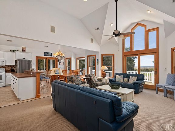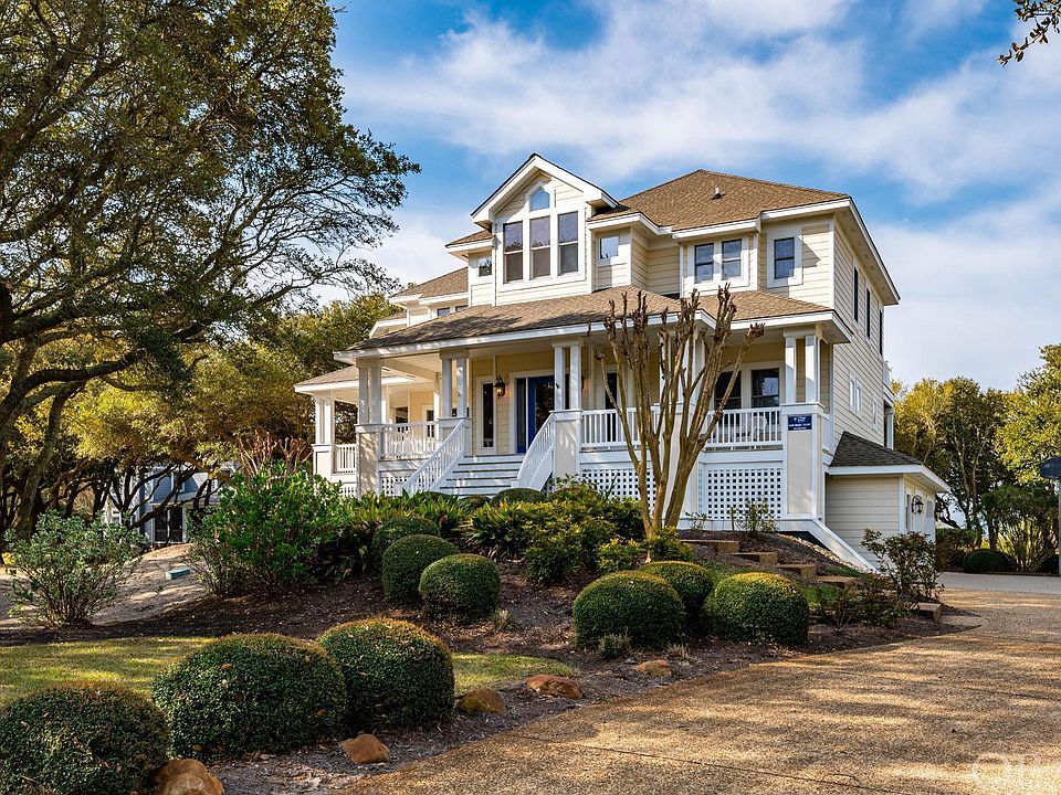 Revel in spectacular golf course and sound views from this spacious 6 bedroom 5.5 bath vacation home with game room, screened porch, and private pool located in the prestigious Currituck Club. Multiple connected decks offer many options for outdoor relaxation and enjoying incredible sunsets over the Currituck Sound. The upper level of the home boasts an open floor plan showcasing the panoramic views from the large family room with half bath, cathedral ceilings and gas fireplace, kitchen with breakfast bar seating, and the dining area with adjacent screened porch. Looking out over the family room is a loft area with gaming table and writing desk. Also on this level is the large primary en suite bedroom with spacious private bath complete with walk-in tiled shower, jet tub, and dual vanities. This suite also has access to the expansive sun deck. Running the length of the house, this top level deck allows for front row seating to breathtaking sunsets over the 16th green and water views beyond. The midlevel of this lovely home is comprised of an inviting front entry foyer and two more en suite bedrooms with covered deck access and large private bathrooms. Two additional roomy guest bedrooms share a Jack ‘n Jill bathroom with double vanity. The ground level sports another guest room with double bunk beds, full hall bath, laundry area, convenient interior storage room, and the game room with adjacent wet bar. The pristine garage provides an overflow recreation space for ping pong and a large utility room for out-of-the-way storage. Outside, there is plenty of space to relax on the covered patio or bubble in the hot tub located in the enormous pool area. The oversize private pool (16’x32’) and substantial pool decking provide more than enough room for everyone. Two outside showers, fish cleaning table, basketball hoop, and horseshoe pit round out the exterior amenities. Located on an X flood zone lot in the sought after Currituck Club with its wide range of amenities including in-season concierge and trolly service, golf/ fitness/ tennis facilities, community pools and more, this amazing vacation property is convenient to all the great restaurants, shopping and attractions of Corolla and the northern beaches.