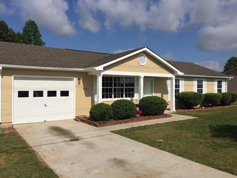Welcome home to this relaxing country ranch style home. This cute home features 3 bedrooms, 2 baths and 1235 sq ft of living area just waiting for your finishing touches. Perfect starter home, or someone looking to downsize! This low maintenance home provides laminate floors in living area, tile in kitchen and an attached one car garage. The large back yard features a privacy fence and patio area. This home has the 'SMART' Wi-Fi operable thermostat and a security system. Make this home yours, call today!