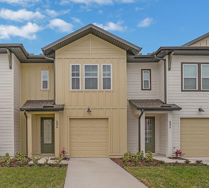 Welcome to The Enclaves at Festival! Gorgeous brand new town-homes located in the highly desirable, Champions Gate area. This home has a sunny bright, open kitchen with plenty of upgrades such as beautiful 42 inch White and Navy cabinets, (Luxe Premium Collection), all stainless steel appliances including stove, dishwasher, and microwave. Enormous island with Quartz counter that is open to the great room and dining area. Main living space on first floor features wood look ceramic tile flooring and bedrooms with upgraded stain resistant carpet for comfort. Enjoy the resort style amenities with a swim in the community pool, kids water park, fitness center, 18 hole miniature golf, and beach volleyball court. This home is conveniently located to shopping, grocery stores, Posner Park, Champions Gate Village and Disney World.