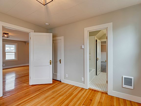 This home has all the charm of a vintage farmhouse with beautiful new and modern finishes. You will love the original old growth wood floors on the main and new designer carpet upstairs. Original built-ins add character and subway tile backsplash in the kitchen and extensive tile in the bathroom adds style. New windows are Milgard, newer roof (2015), new flooring and paint throughout. New light fixtures, sewer line and electrical panel. Detached garage or outbuilding, also has alley way access.