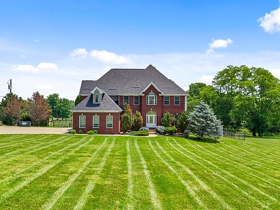 This dream country estate blends luxury, space and tranquility in the heart of prime farmland! This incredible 2-story executive home on a full finished basement is a dream for a large family or multi-generational living. Soaring ceilings, floor to ceiling windows and a gourmet kitchen are just a few of the features that truly set this home apart. In addition to the jawdropping living room and kitchen, the first floor features a flex room, an office or bedroom, and formal dining. Up the impressive staircase is the grand primary en suite featuring a fireplace, vaulted ceilings, massive bathroom with soaking tub, walk-in shower and huge walk-in closet. Three additional bedrooms, another full bath and laundry complete the spacious private quarters. Below, the mother-in-law suite is a complete residence in itself! With a living room, full kitchen, media room, bedroom, its own laundry room, and two entrances, you have complete privacy and independence. Outside, enjoy a large patio and deck overlooking 3 spacious paddocks. A 3-car garage plus a separate 3 bay building complete this impressive property that has room in the price to build equity with your improvements!