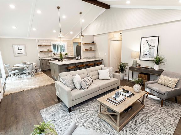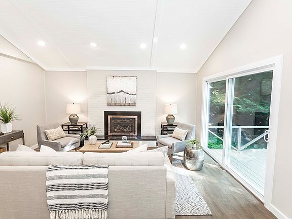 This gorgeous totally renovated lake home will stun you with its modern & sparkling interior finishes. This open concept home is captivating with beamed cathedral ceiling, custom fireplace, stylish kitchen boasting quartzite leather finished counter tops, stainless steel appliances and contemporary backsplash. Maintenance free engineered hardwood flooring throughout the home. Alluring baths are impressive with beautiful tile finishes & walk in showers. The 2nd. family & dining area opens to a new deck the length of the home with very private wooded view. Additional enticing features include central air, all new windows & sliders, attached oversized garage, front decking, peaceful & serene setting nestled among the trees. This is a delightful home in a pristine setting. Walk out your back door to the beautiful Arnold Palmer designed Peninsula course or enjoy the hiking and biking trails nearby. Schedule your tour now!