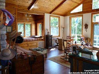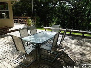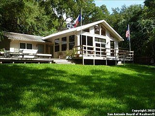 148 feet (approx) on deep part of the Guadalupe River. Grassy slope to water shaded by huge oak and cypress trees. House is in pristine condition with lots of updating. Sunroom oveerlooking the river, wrap around deck, island kitchen, rock fireplace, deck off master suite, beautiful gated entry and tree lined drive welcome you home. Furnishings are negotiable. Brokered And Advertised By: Prudential Don Johnson CL Listing Agent: Dianne Thomas