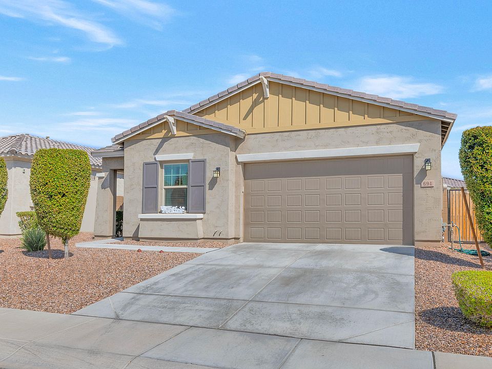 BACK ON MARKET!!! Buyer couldn't qualify last minute! Just two short blocks to a beautiful Blue Horizons neighborhood park, you will find this newer Cal Atlantic three bedroom PLUS den home with two baths, BEAUTIFUL tile flooring THROUGHOUT - NO carpet, neutral colors. Kitchen with large island counter, dining area and open to great room. Two bedrooms plus open den and second bath at front of house. Large master with ensuite bath & walk-in closet. Refrigerator, washer & dryer included! Move in ready to start enjoying the Blue Horizons neighborhood life! Solar lease is $155/month - non-escalating. Sellers still running a credit every month!
