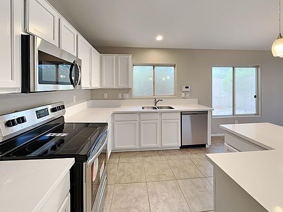 If Buyer uses the Seller's Preferred Lender for financing, Seller may contribute up to 2.5% of the Purchase price to buy down rate by 2% for the first year, 1% for the 2nd year. Welcome to your beautiful home in the Highly desirable community of Windmill Village. Home features a gorgeous kitchen with New Quartz countertop, light cabinets, New matching stainless steel appliances including built-in microwave, range and dishwasher and reach-in pantry, custom lighting and nice high vaulted ceilings that really open up the room. Home has also been updated with fresh interior paint and new carpeting, both with neutral colors. Outside you'll find low maintenance landscaping in front and rear with watering system and timer.