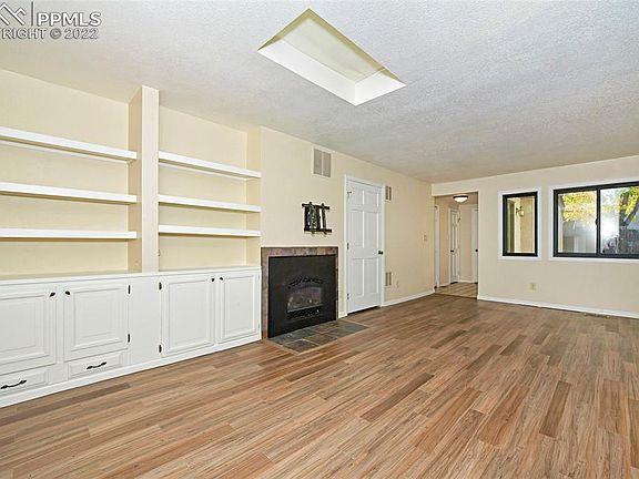 Come see this quaint townhome on the Westside that has 2 bedrooms and 2 bathrooms, an enclosed front patio and new vinyl floors throughout. As you enter the home, you are greeted with a sizable entry with a coat closet and access to the attached 1-car garage to your right and to your left, you enter the family room. The family room has a gas fireplace and built-in shelving along with an open and seamless layout adjoining the dining area. The kitchen has ample cabinet and counter space along with a eat-on countertop, pantry, and a laundry closet with the included washer and dryer. Down the hall you will find both bedrooms. The master has an attached bathroom with double vanity, a walk-in closet, and a small private deck. The second bedroom is serviced by a separate full bathroom in the hallway. The home has received new windows in 2019 and new vinyl flooring in 2021 and it also features central A/C and stucco siding. The entire complex is tucked away behind mature foliage while still offering an ideal proximity to I-25, downtown Colorado Springs, and nearby shopping centers. Don't miss out on this deal!