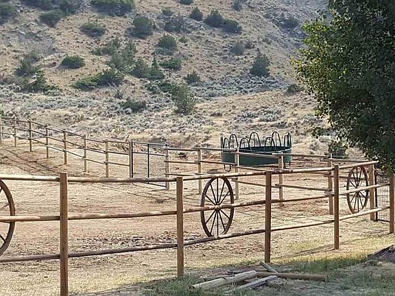 Beautiful, custom log home w/mature trees, landscaping, underground sprinklers on 20+/- acres, this would make a great horse property! With 3 bedrooms & 2 baths, kitchen, family room, two bedrooms & 1 bath on the main floor, a loft/bedroom with another bathroom upstairs, a non-conforming bedroom & dining/family room in the daylight basement. The home has a wraparound deck & a great covered patio area. There is a spring on the property, an over-sized 2 car detached garage, loafing shed and a storage shed.