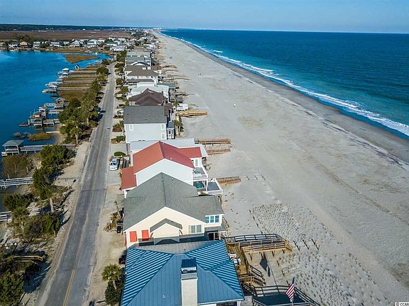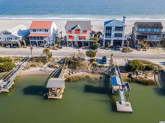 Perfect Holiday Present for the beach lover in your life! This Oceanfront home is a well maintained Pawleys Island favorite known as "By Grace". Its outstanding location on Springs Avenue with private creek dock invite guests and owners to enjoy incredible sunrises over the Atlantic Ocean and stellar sunsets over the creek. Being sold fully furnished with a healthy vacation rental guest portfolio--this home will surely meet the needs of anyone searching for just the right Oceanfront home on Pawleys. Downstairs this home features an open living room, dining room and kitchen with lots of space for family, friends and guests. The Kitchen features plenty of storage and workspace as well as stainless steel appliances, granite countertops and bright lighting. One of the best features of this home is its long dining table and eating area which becomes the hub of the house for dining, games and remote learning. Imagine yourself curled up on the window seat reading a book as a bald eagle swoops down to dine on a mullet in the creek. An abundance of light and storage fill this home. Also downstairs is a master bedroom with ensuite bathroom that features walk in tile shower which will accommodate a wheelchair. Access to the porches are available from the dining and living room. Finally the lower level features an additional open living space with a half bath that also doubles as an additional sleeping area with a sleeper sofa. Upstairs this home features four more bedrooms and bathrooms as well as a sun porch which also doubles as the 6th bedroom. In addition, the upstairs features a laundry room and separate living space for watching TV and/or relaxing. Owner has added Fresh paint and flooring upstairs as well as several new toilets. Additional features include Hurricane shutters, elevator, under house storage as well as gated area below for additional storage, pets or play area. Outside Hot/Cold Enclosed shower and plenty of decks and space to enjoy the fantastic weather that the low country of South Carolina has to offer. This home is a must see and will not last long! Contact your agent today to schedule a showing for this well known house on the south end of Pawleys Island.