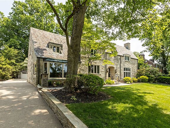 Welcome to 694 Valleyview Road, a stunning stone Tudor in Virginia Manor, Mt. Lebanon’s only perfectly flat community, known for its beautiful tree-lined streets where you’ll feel immediately welcomed and at ease. This timeless home blends historic charm with modern comfort, featuring a light-filled living room with signature Tudor windows, hardwood floors, and a fireplace. The elegant dining room opens to an eat-in kitchen with granite countertops, a butler’s pantry, and first-floor laundry. The family room impresses with a floor-to-ceiling stone fireplace, built-ins with a rolling ladder, beams, and a wet bar perfect for entertaining. A newer three-season room overlooks the fenced yard with a patio, outdoor kitchen, playhouse, and detached two-car garage. Enjoy walkability to Jefferson Elementary and quick access to Mt. Lebanon’s schools, local private country clubs, the airport, and downtown Pittsburgh.