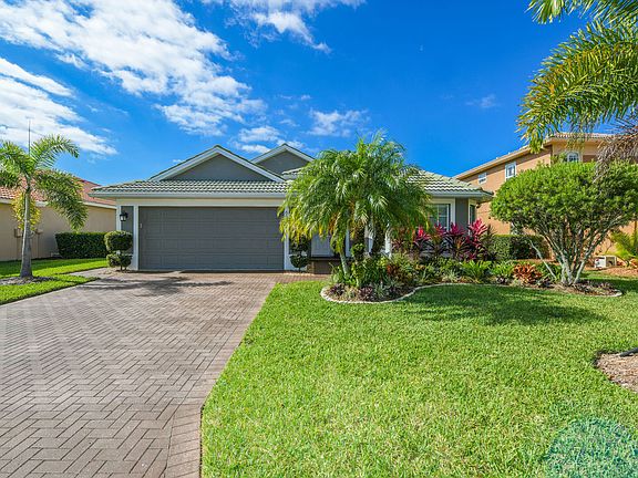 You'll love the gorgeous lake views from this 1,957 sq. ft. move-in ready home, in River Place. Enter the front door of this home and you will notice the generous living space. The home has an airy open feeling with double tray ceilings and crown molding. Freshly painted both inside and out lends to the move in ready appeal. Garage floor and walls all freshly painted. The lovely kitchen features newer stainless steel appliances, Corian counters and rich wood cabinets. There is also a nice family room with custom built-ins perfect for your TV. The master suite has a beautiful custom in walk in closet, large bath with dual sinks, a garden tub and a relaxing shower. With 2 nice sized bedrooms, the den/office could be easily converted to a third bedroom. The sliding doors from the living area open to an 18x40 screened lanai that is perfect for entertaining or relaxing. Centrally located, near are all things that make Florida living great, such as golf, the beach, hiking trails, shopping (UTC), a great dog park and A rated schools. This hidden gem of a gated community has an inviting heated community pool, game room, gym, kayak launch and beautiful club house for your entertaining needs. Additional upgrades include, barrel tile roof, paver brick driveway, 18 inch floor tiles, gas hot water heater, Maytag Bravos washer and gas dryer, hurricane shutters, Humidistat, attic storage, alarm system, sprinkler system, garage door key pad, garage storage, new carpet in master bedroom, family room and den.