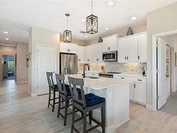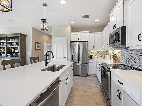 C.18062 - TURNKEY FURNISHED AND PRICED TO SELL! This second floor end unit has a one car garage and lots of privacy. The Windermere model boasts an inviting open floor plan with over 1,600 square feet, 2 bedrooms and a den. The master suite is positioned away from the guest bedroom and den offering a private retreat for your guests. Wide plank tile flooring, impact resistant windows and sliders, gourmet kitchen and lovely finishes through the entire residence. Avalon is a gated community which features a clubhouse complete with a resort style pool and spa. The community is located just minutes from Naples finest attractions such as 5th Avenue, 3rd Street S, downtown beaches, Tin City, Bayfront, Celebration Park and so much more. This is a wonderful opportunity to own this move in ready property in one of SWFL's most desirable areas!