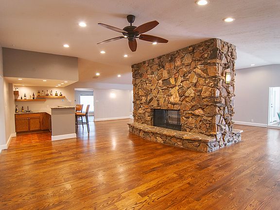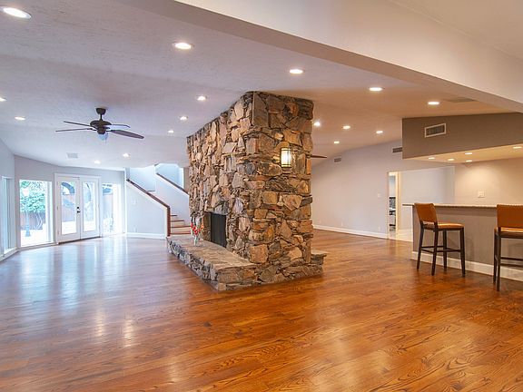 Pool areaMid-century modern homeFossil-rich fireplaceBalcony overlooking the poolQuiet neighbourhoodWet barOffice or game room