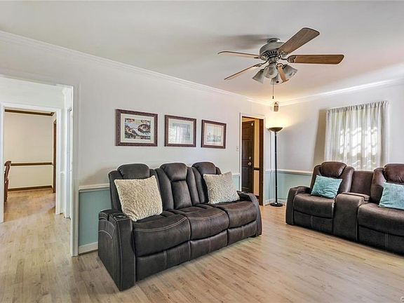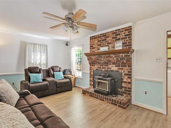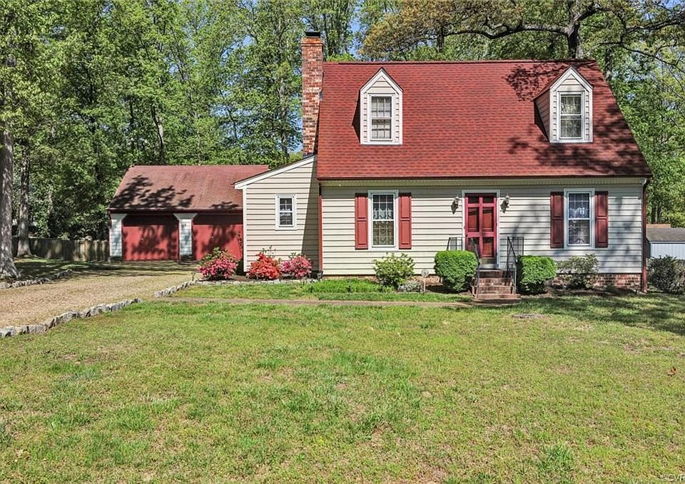 ADORABLE CAPE CODE IN CHESTERFIELD COUNTY W/QUAINT TOUCHES THROUGHOUT! Formal Living & Dining Rooms Feature Crown Molding, Chair Rail & Chandelier. Eat In Kitchen Boasts Updated Lighting, Large Pantry, Built In Microwave & Under Cabinet Lighting. Spacious Family Room Centers Around Wood Burning Stove & Offers Chair Rail, Crown Molding & Light/Fan. Master Bedroom Has Unique Gable Ceiling, Light/Fan, Carpet, WI Closet & Attached Half Bath. Second Floor Offers 2 More Bedrooms w/Closets, Carpet & Light/Fans And Full Bath w/Vanity & Tub/Shower. Utility Room Has Tons of Storage Space w/Built In Cabinets. Sizable Detached 2 Car Garage! Brick Walkway Leads to Patio & Private Backyard w/Fence. Come See This Home in Quiet Neighborhood w/Community Feel!