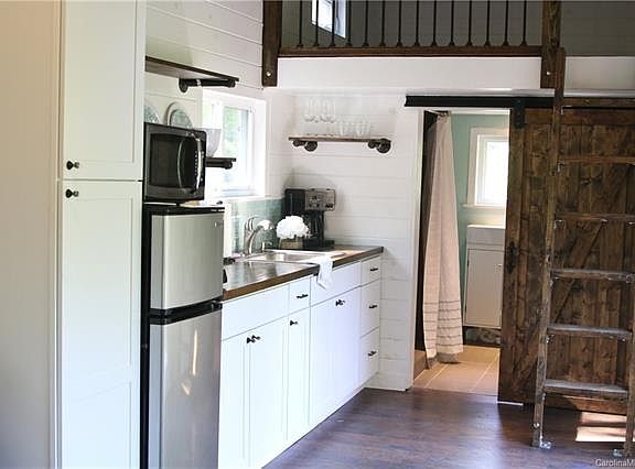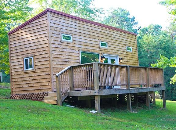 Sloped 2-acre wooded lot with a creek running along the back of the property. Nestled on a level area is a tiny home filled with an immense amount of charm & personality that is sure to impress & leave you in awe. The custom built 320 sq ft. home is perfect for weekend retreats & is complete with painted cedar walls, hardwood like floors, and stainless-steel appliances. The mix of textures used to garnish the home echo nature & design customary to Chip & JoAnna Gaines- beautiful wrought iron railings, butcher-block counter, & sliding barn door. The allurement doesn't stop there, it spills out onto the deck where you can relax and breathe easy. Being in close proximity to Lake Wylie, Clover, & Charlotte verifies that tranquility & serenity are right around the corner.