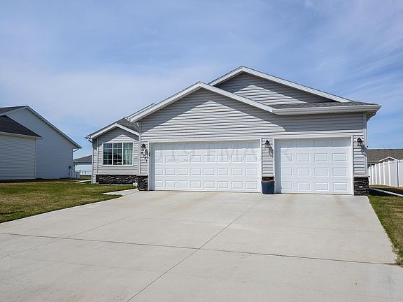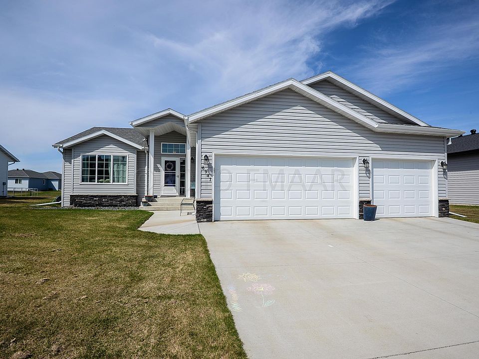 Fantastic South Fargo rambler located in the growing Davies addition! Enjoy 4 beds, 3 baths, and 2500 sq ft of living space. On the main level, you'll love the open floor plan great room with access to the back patio, vaulted ceilings, granite counters, SS appliances, hardwood floors, laundry, and master suite with WIC & 3/4 bath! Downstairs, you'll find another large family room, 2 guest bedrooms, a full bath, and plenty of storage space. Outside, enjoy the spacious yard, sprinkler system, and stamped concrete patio! Garage is finished and wired for heat. This home has so many great features - schedule your showing today!
