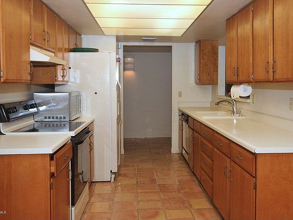 For more information on this property, contact the Listing Agent, Mary Dorais at (520) 918-2479 or mdorais@LongRealty.com. Wonderful end unit, backs up to common area and the Ventana Wash. Mountain views and privacy. 3BR/2BA with den (which can be an optional 4th BR). This versatile floor plan has a separate living room and family room off the kitchen. Spacious bedrooms with built in shelving in the closets Kitchen is light and bright with skylight and eat in area. Charming beehive fireplace in the den.Beautiful saltillo flooring, french doors to the patio from living, family rooms. 2 storage rooms and plenty of interior closet space.Spacious covered saltillo tiled patio, perfect for entertaining in privacy. See attached floor plan. HOA includes fire protection,trash,common areas including pool,spa and tennis courts.