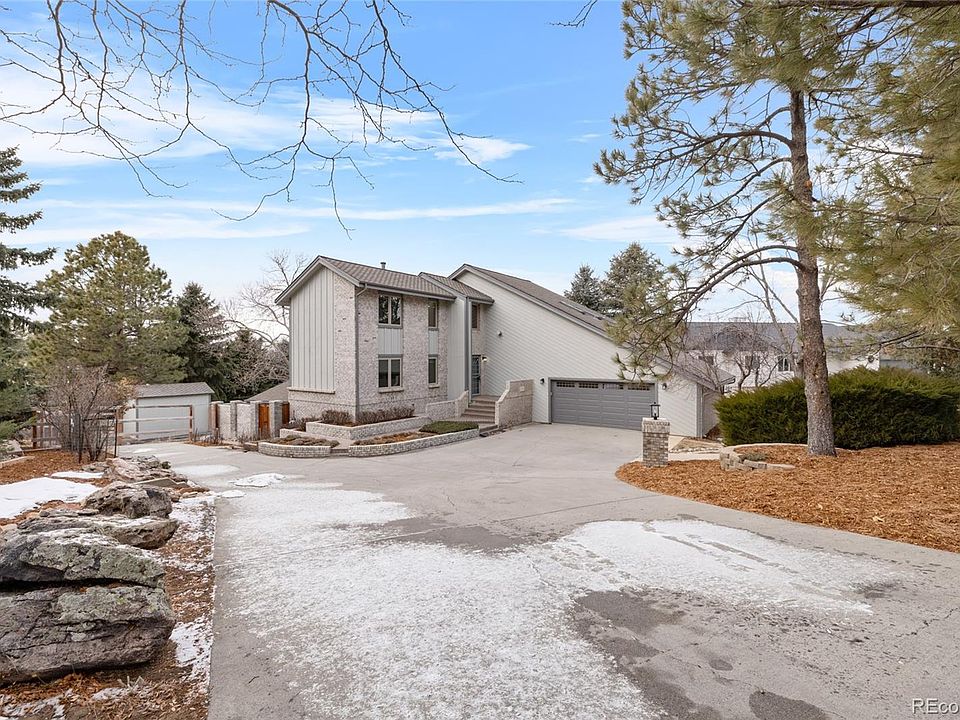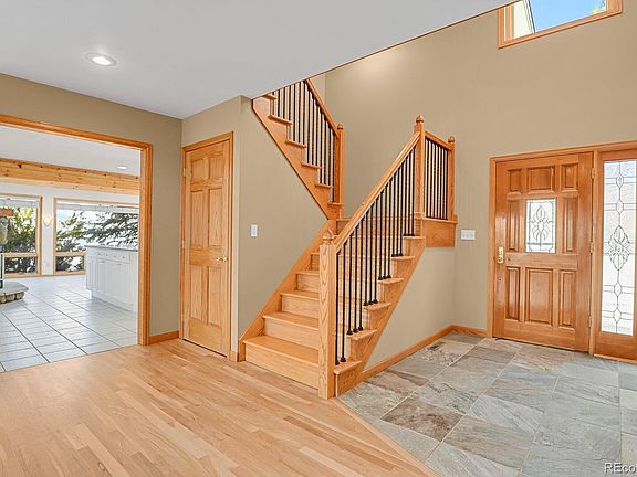 Beautiful Pinery .43 acre walk-out estate in a Colorado paradise with forever unobstructed mountain views. Backs to 10 acre Pinery Open Space. Wonderfully maintained and many updates. Experience quality real wood floors, windows and doors from brands like MILGARD and Renewal by Andersen. Deluxe solar powered sky windows(remote operated) and Vaulted ceilings. Start UPSTAIRS: Primary Suite - reading nook with fireplace, giant updated 5-piece bath with skylights, a huge closet and full mountain view sunsets off it's private deck. Loft bridge overlooks living room and connects to a 2nd Primary bedroom with updated ensuite bath. MAIN LEVEL: Kitchen - chef's delight, stone fireplace, abundant custom cabinetry (lighted, glass fronts, wine rack), one stainless steel undermount sink plus an Island sink, granite counters, giant pantry, open to sunroom and deck. Living Room - Live the charm of a natural stone wall and fireplace with real wood vaulted ceilings steps out to a large North and West facing deck. Bedroom/Office - linen closet and updated 3/4 bath with European glass shower. WALK-OUT: Wet bar with sink and refrigerator. Combo Laundry and updated 3/4 bath. Custom office w/undermount lighting. Large utility/workroom with rolling worktable (Easy convert to 4th bedroom). Huge family room with stone fireplace and accent wall, two wood sliders walking out to outdoor kitchen and patio. OUTSIDE: 1,100 plus sq ft of brick patio includes the outdoor kitchen, spa patio(pre-wired) and yard patio plus a charming flagstone patio off the front drive. A lush green yard with a gate to the open space. Abundant planting beds. Enclosed garden. Open-air storage area, a tuff shed and a garden shed. Giant 2-car garage with rear entry door, built-in storage and bonus attic storage. Lighted brick pillars greet you at the driveway. Pictures do not do this property and home justice. Come see this beautiful, move-in ready home for yourself! Floor plans included in pictures.